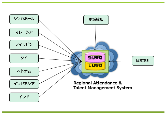 東南アジア&インド域内でのローカル人材の情報把握と、日本を含めた域内拠点間の人材活用。 これをベースにした勤怠管理システム(出退勤用認証デバイス装置含む) 人材情報の管理(Talent Management)と勤怠管理(休暇等の申請承認含む)